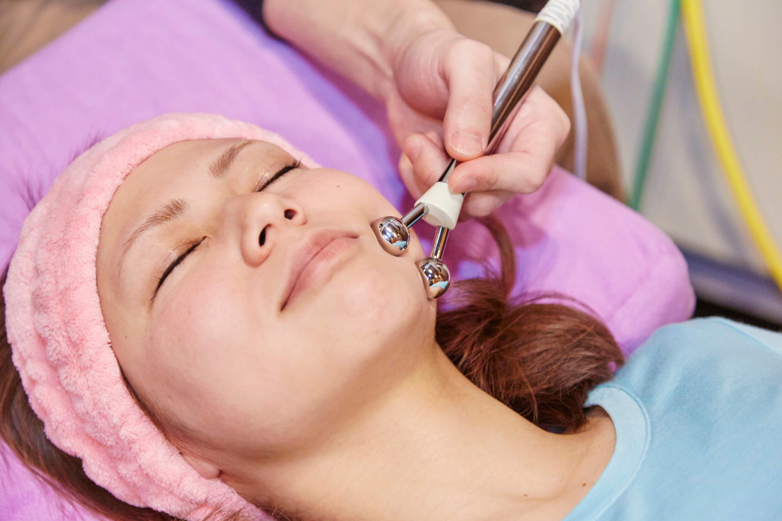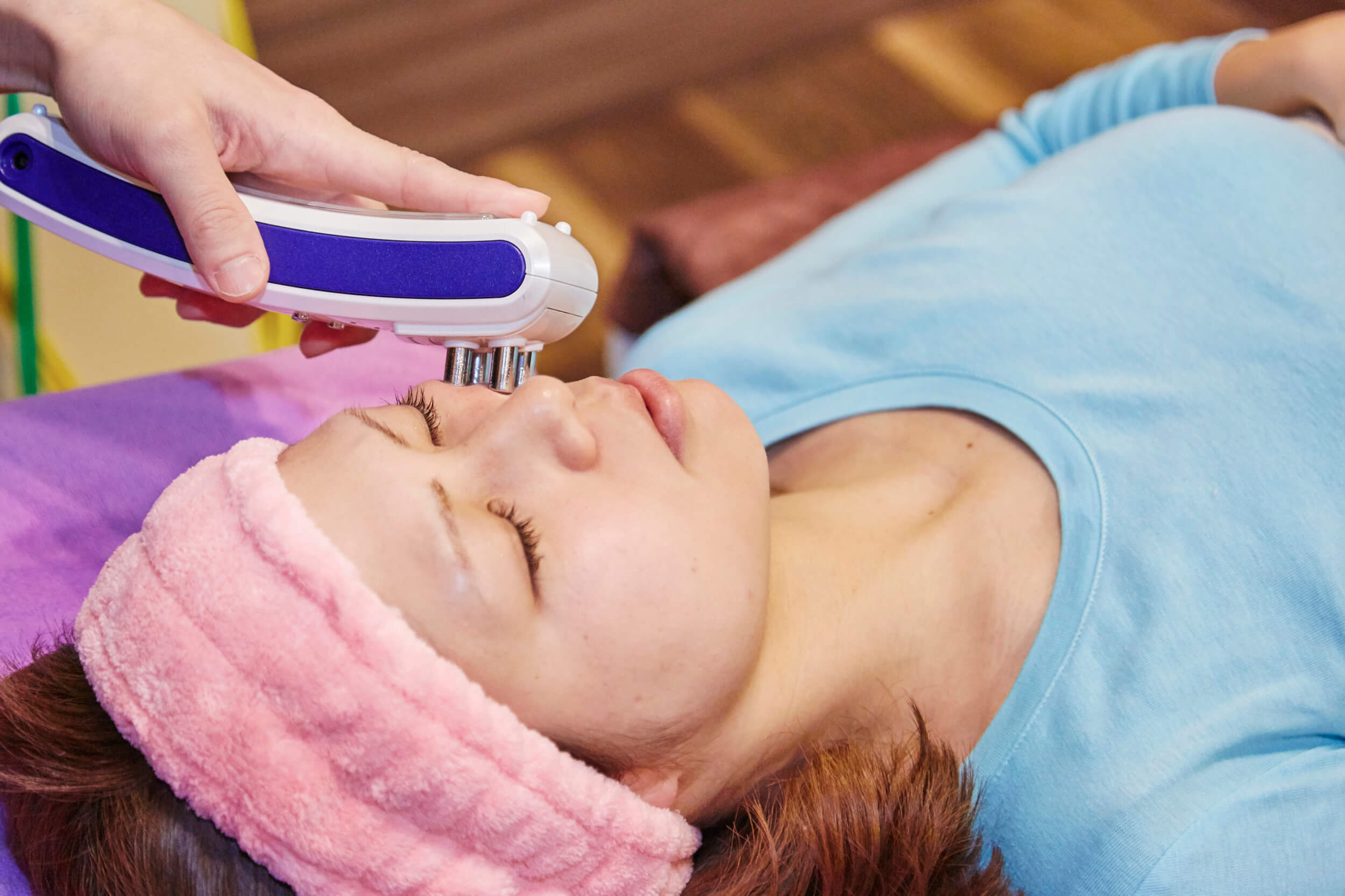 まずは専用の器具を使い、顔全体にラジオ波をあてていきます。