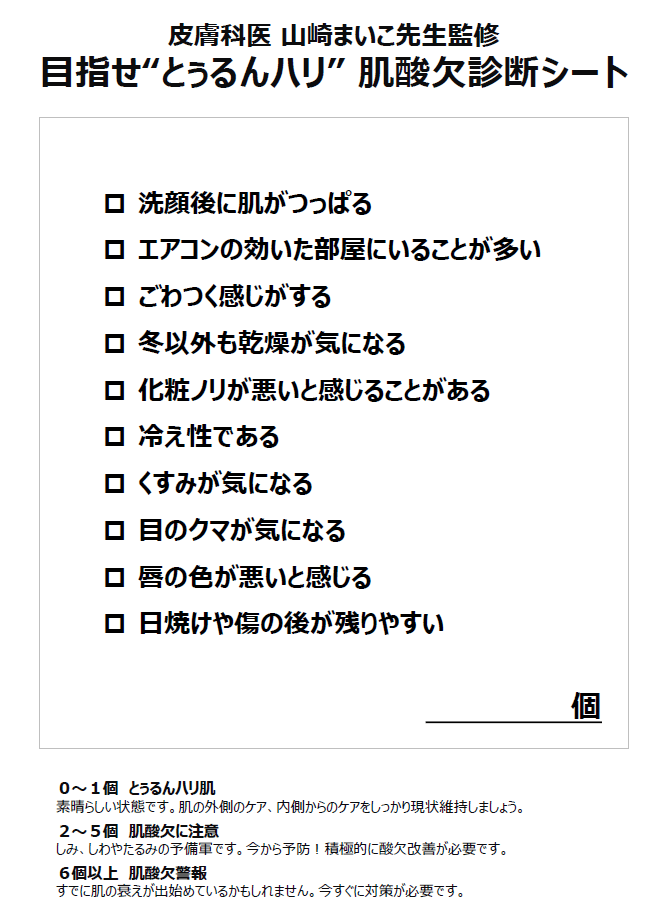発売記念イベントではゲストとして辺見えみりサンと皮膚科医の山崎まいこ先生が登場。肌の酸素不足状態を診断するチェックリストで、まずは自分のお肌の状態を知ることに! みなさんはいくつ当てはまりますか?
