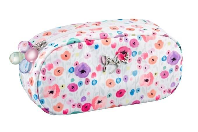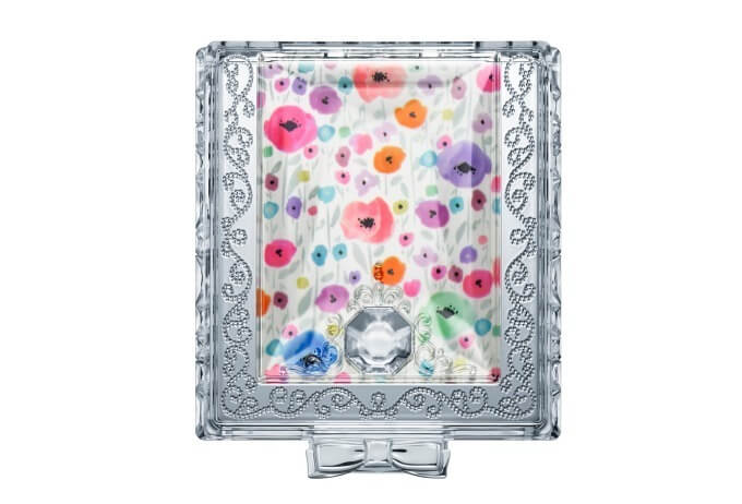 心がウキウキするような、小花模様がキュートなコスメポーチも限定品で登場。色とりどりの花々と同じカラーのクリスタルチャームがポイント。見た目はコンパクトだけど、間口が広くコスメの収納がしやすく、使いやすさも◎。かわいい見た目と機能性を兼ね備えたポーチです。