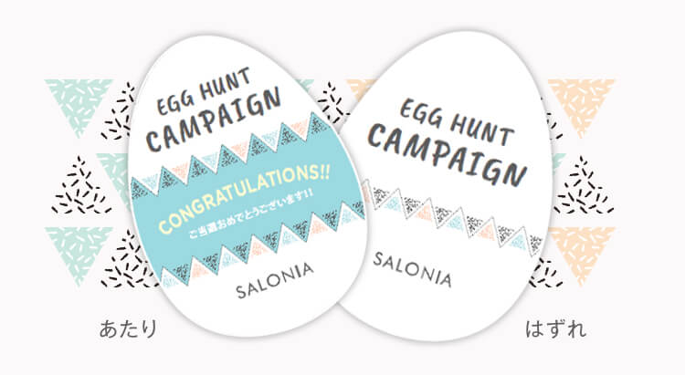 「Brand New Me!」シリーズの発売を記念して、新生活をさらに楽しく盛り上げる購入者限定のプレゼントキャンペーンを実施。ご購入いただいたヘアアイロンには「あたり」「はずれ」のいずれかのカードが入っています。「あたり」の方には新生活を応援する世界でひとつだけの特別なアイテムをプレゼント♪ 「はずれ」の方にも、ご購入いただいた商品とカードを撮影し、「#SALONIAエッグハント」のタグをつけてインスタグラムに投稿すれば、サロニアスタイルキープヘアミストが抽選で当たるというダブルチャンスが!