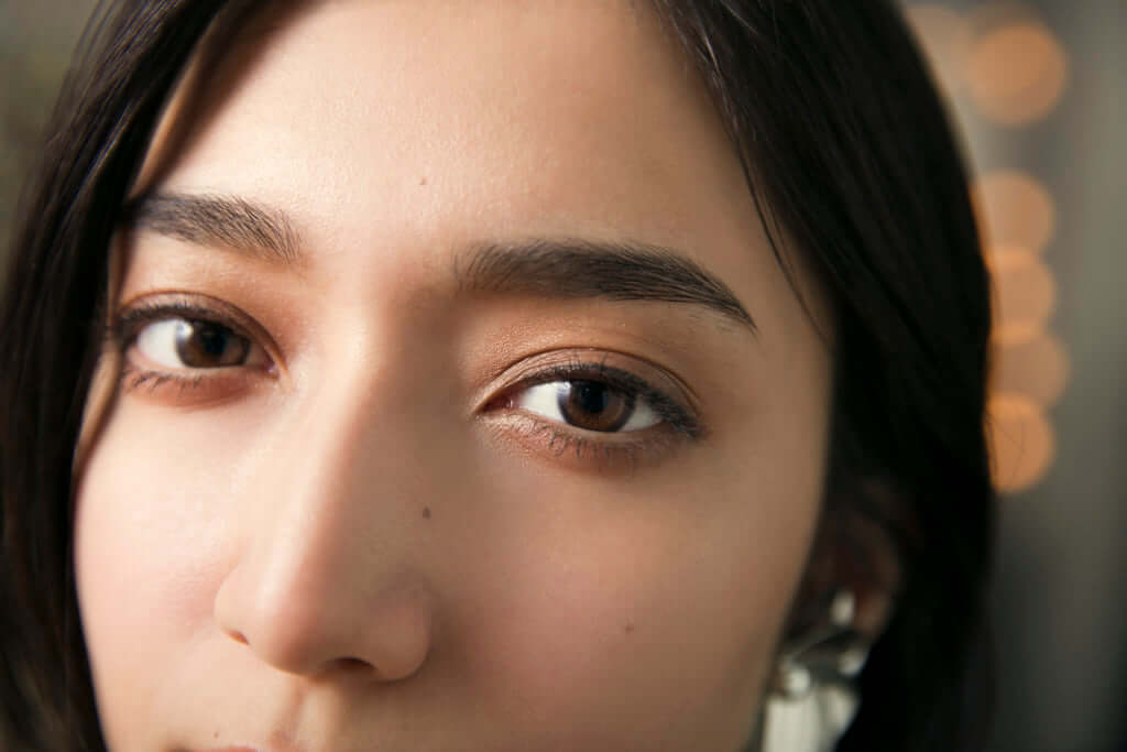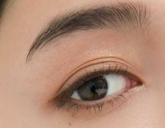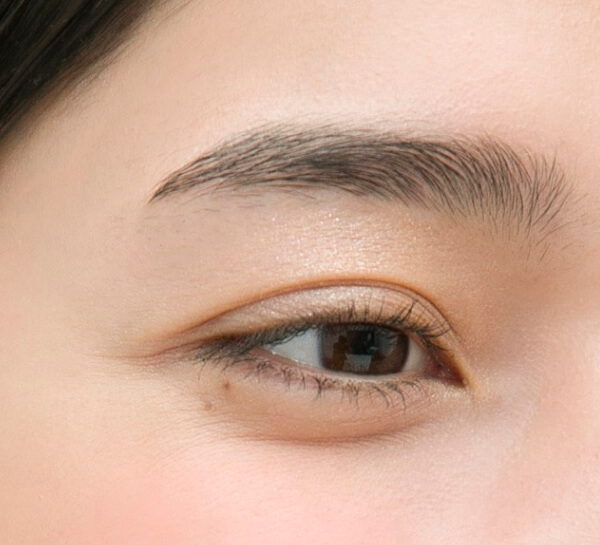 目もとは目尻側にボリュームを出すと目の横幅が強調されて、スタイリッシュな印象になります。