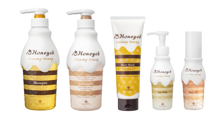 まるでスイーツのようにかわいいパッケージにも注目! 「Honeycé」のブランド名の由来にもなっている「甘いハチミツの世界を堪能して♪」という想いがパッケージにも込められています。
