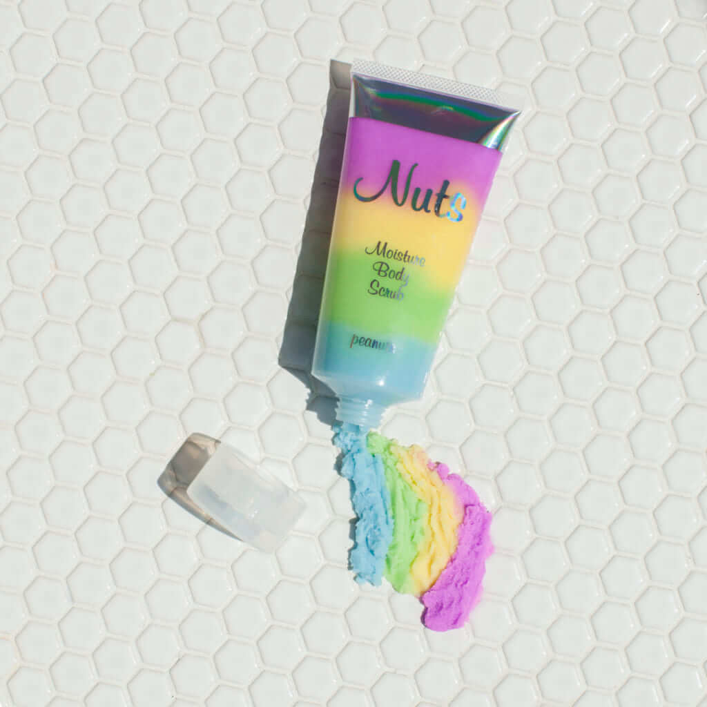 見た目からHAPPYなボディケア見つけちゃいました♡ その名も「Peanuts(ピーナッツ)」。「Peanuts」のラインナップは今まで出会ったことがないような、レインボーカラーのボディスクラブ「Nuts(ナッツ)」と、インテリアにしたいくらいおしゃれな見た目のボディジェル「Starry bell(スターリーベル)」。海外感ただようスタイリッシュさなのに、なんと日本のブランドっていうのがニクいでしょ♡