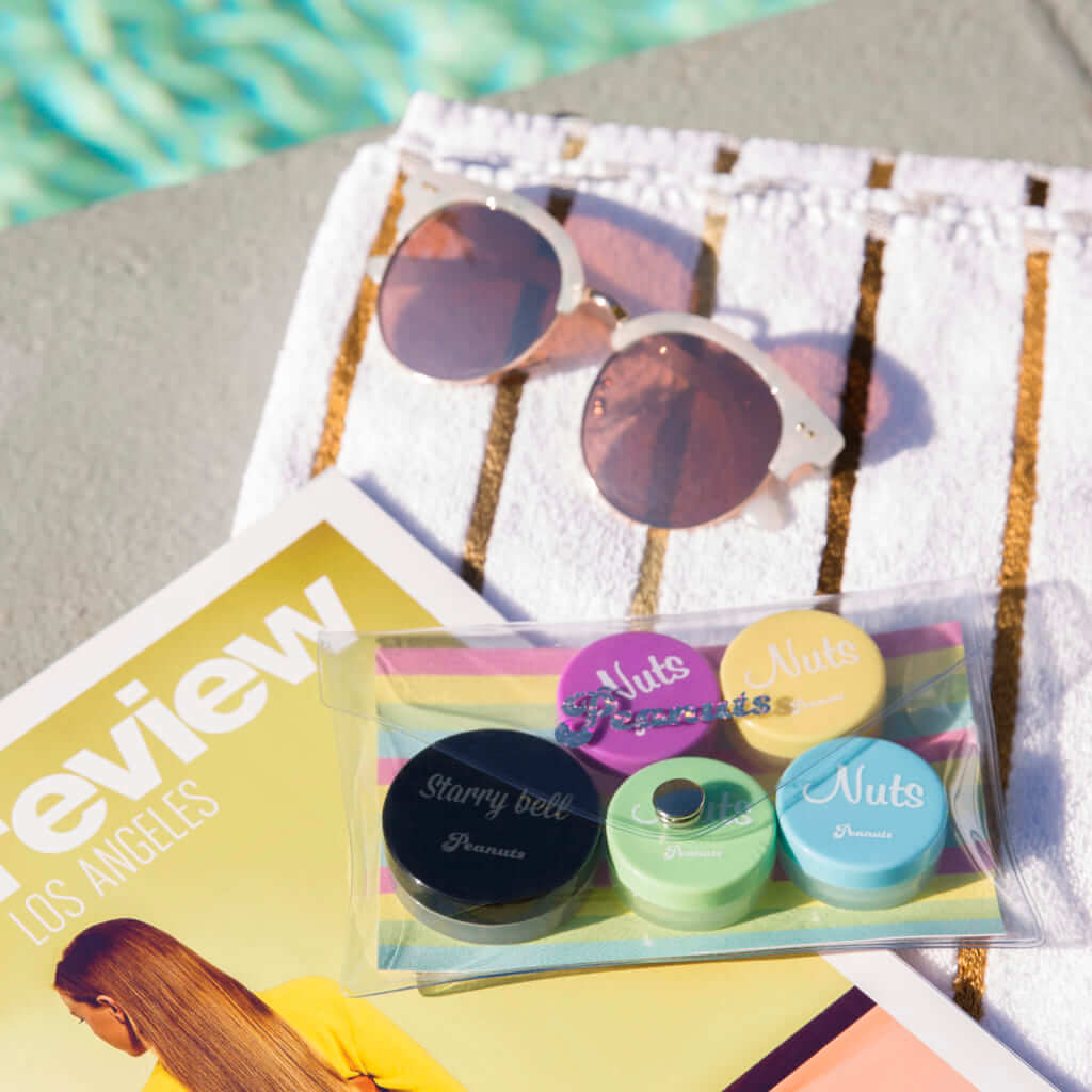 「Nuts」と「Starry bell」を一度にお試しできちゃう「Trial Kit(トライアルキット)」もありますよ。それぞれの香りのスクラブやジェルを入れた容器がとってもカラフル! 旅行用やお友達へのプレゼントにもおすすめ。