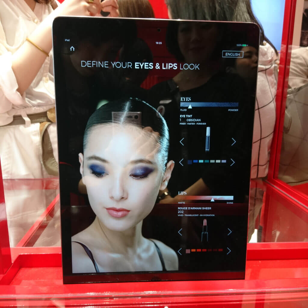 タブレットでは、デジタル上でリップとアイメイクの仕上がりイメージを参考することができちゃいます。
