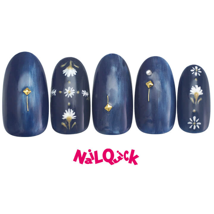 初秋の夜空とコスモスをイメージしたネイル。アビスカラーで涼しげに。
