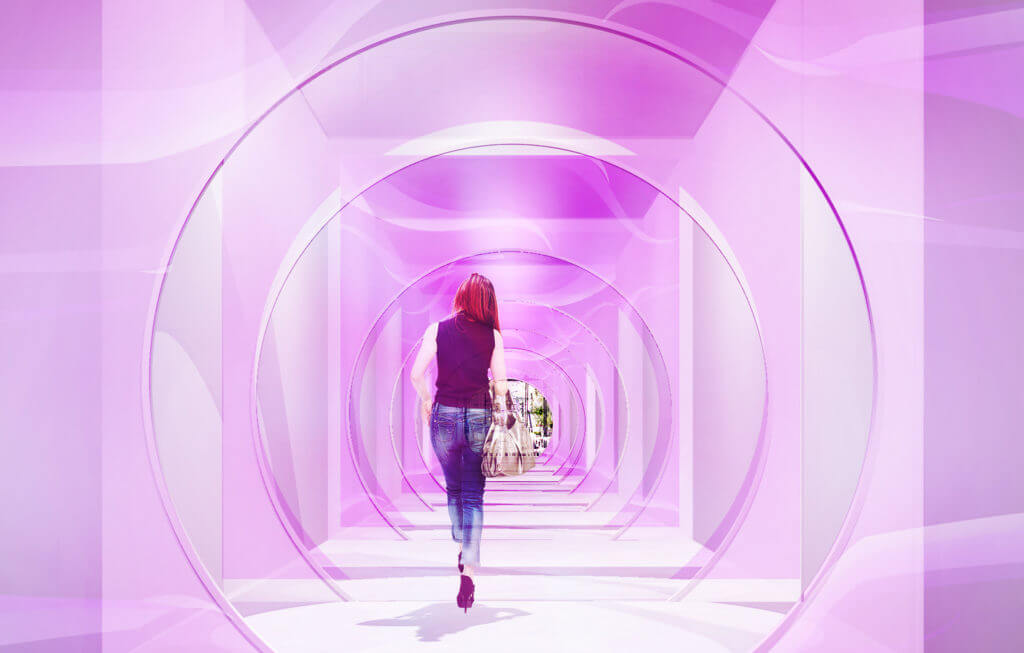 「LAYER ROAD-角層トンネル-」や、多重層リポソームのカプセルをモチーフにした空間、