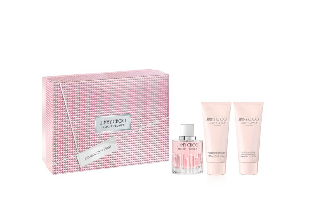 セット内容:ジミー チュウ イリシット フラワー オードトワレ(100mL)、同ボディローション(100mL)、