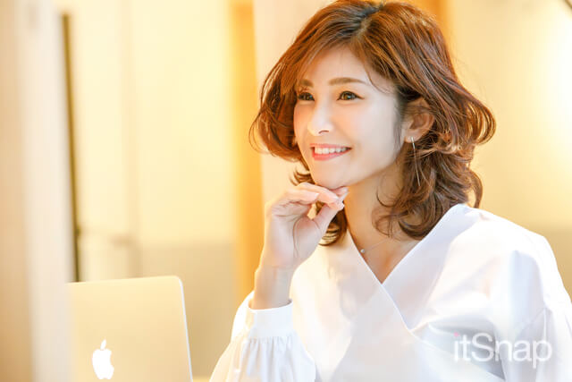ストレートアイロンを使い、表面だけをほんのりワンカールに。トップに少しボリュームを出し、ひし形シルエットにすることでショートでも女らしい印象をプラス。中間から毛先に“うるキラ髪グロス”を。前髪や顔周りにもつけ、ツヤと束感を出しながら耳かけにアレンジ。