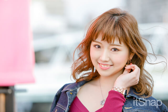 ゆる巻きヘアをツヤ感と耳かけで今年らしく