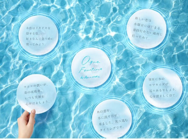 また、店内では必ず何かが当たる「アクアフォーチュン(水みくじ)」が体験可能♪ 水に浸すと運勢が浮かび上がるアクアフォーチュン。浮かび上がる運勢によってもれなくプレゼントが当たります。ラッキーなら「アクアレオティエ」現品がもらえるかも!