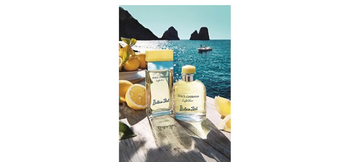 写真左「ドルチェ&ガッバーナ ライトブルー イタリアンゼスト オードトワレ」50mL/9,500円、100mL/12,700円(税抜)、右「ドルチェ&ガッバーナ ライトブルー プールオム イタリアンゼスト オードトワレ」75mL/8,200円、125mL/11,500円(税抜)