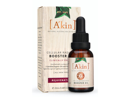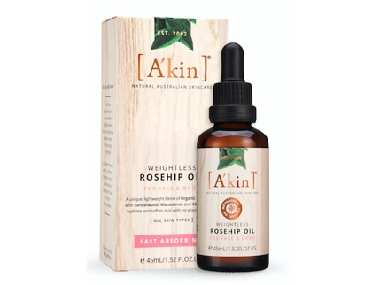 ローズヒップ、ざくろ、ローズマリーを含む7種のオーガニックオイルとホホバやマカダミアなどの植物抽出物すべてに二酸化炭素抽出法を使用したA’kin最強の美容液。肌にハリ、ツヤを与え、滑らかに♡