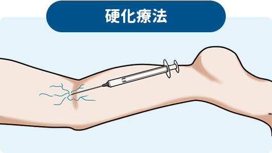 逆流のない軽症の血管に対しては、弾性ストッキングなどの「圧迫療法」や、セルフケアなどで症状をやわらげます。また「硬化剤」を注射することで、細かい血管が目立ちにくいようにします。