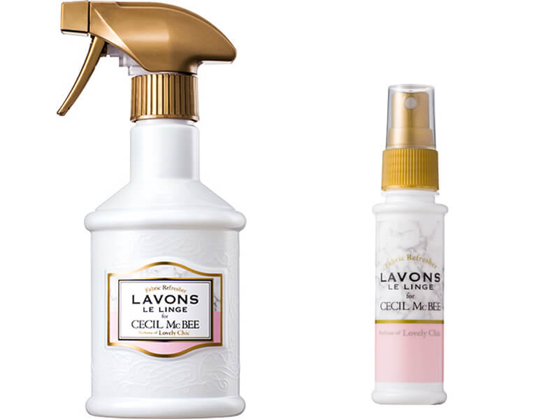 いままでに「LAVONS」が「CECIL McBEE」とコラボした商品には、柔軟剤やファブリッックミストなどがあり、シリーズは共通してピンク×ホワイトにゴールドがワンポイントの可愛いデザイン。シリーズで揃えて使えばお部屋もお洋服もいつも好きな香りで統一。女子力が一層UPしそうです♡ 携帯用のミストは300円とプチプラなので、お試しにも丁度いいですよ〜!