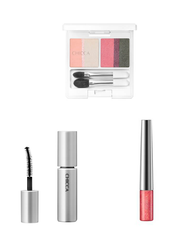 「CHICCA」からはモードなピンクで冬を楽しむ限定アイメイクセットが登場。なまめく目もとをつくる“人肌アイシャドウ”に、きらめく光のラインで大人の抜け感がつくれるアイライナーとミニサイズのマスカラがセットになっています。ポーチは現代アーティスト松浦浩之氏の作品を「CHICCA」バージョンで高感度セレクトショップ「LOVELESS」がデザインしたコラボオリジナルポーチ。甘すぎないクールなピンクでトレンドガールに♡