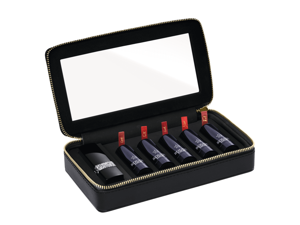 星をちりばめたかのようなケースが可愛い「ルージュ ディオール クチュール セット〈ミッドナイト ウィッシュ〉」。 ケースの中には、リングの部分に小さな星が施された「ルージュ ディオール」が1本と人気の5色のルージュリフィルが宝石箱のように詰まっています。6種類の魅力的なレッドルージュを、その日の気分に合わせて楽しんで。