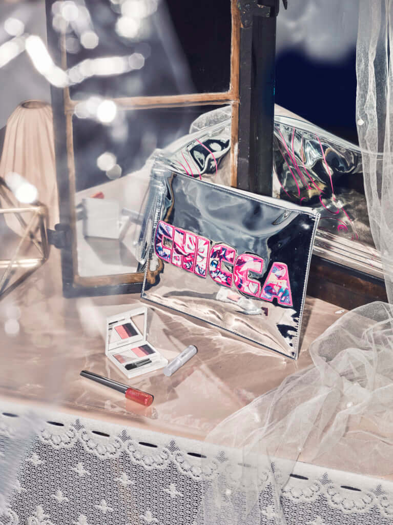 フレッシュでパーリーなカラーと大胆にきらめくエフェクトのアイシャドウに ナチュラル&ビビッドなリップカラーがセットになった使い勝手のいいパレット。クチュールコレクションのスタッズデザインにインスパイアされたパッケージは、ブラックのレザーをベースに星形のラッキーチャームとスタッズがアクセント。ホリデーシーズンの華やかなシーンをより一層盛げてくれそう☆