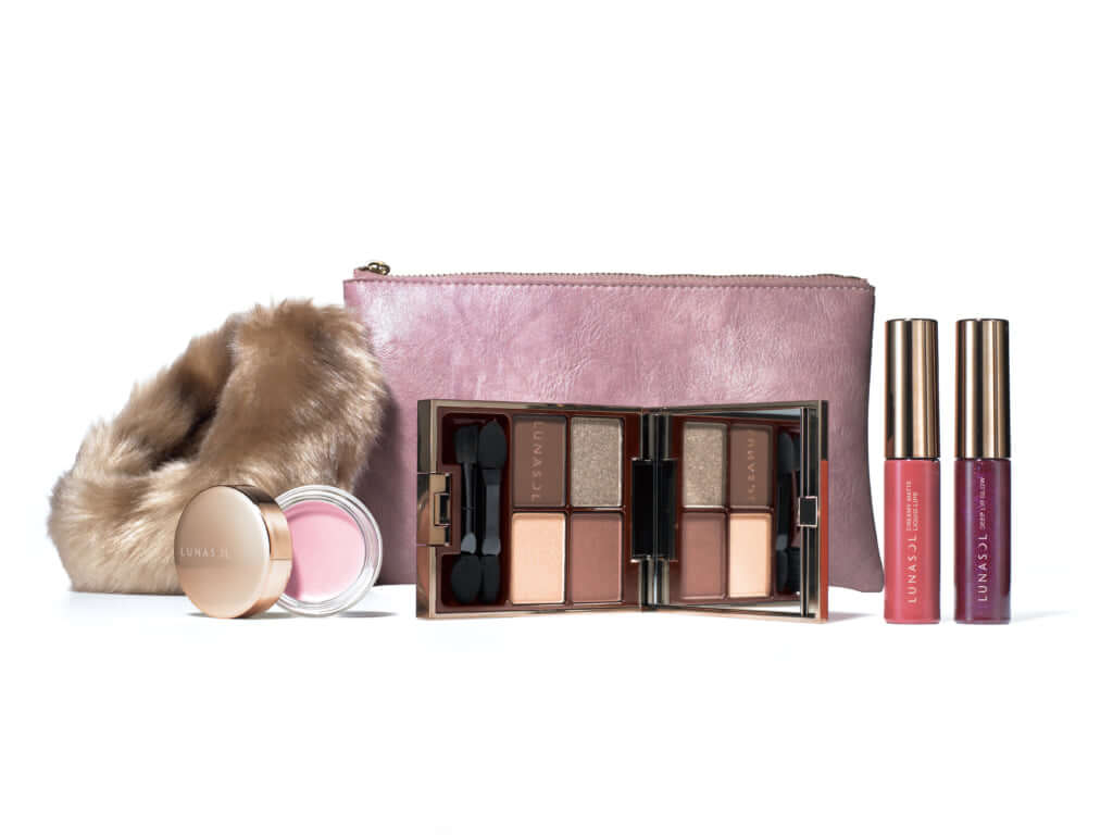 4色アイシャドウ、リップ2本、ハイライトとポーチがセットになった限定コフレ。アイシャドウはシックな色ニュアンスと繊細な輝きの組み合わせで、大人なまなざしに仕上がるブラウン系。リップはクリーミィマットタイプとツヤ感のあるグロスタイプの2種。ハイライトは、肌にとろけるようになじみナチュラルなツヤ感のクリームタイプで、ほのかな血色感とすんだ明るさを与えるピンク系のパール入り。深みのあるカラーと輝きをまとって、思わず見とれてしまう大人メイクに。