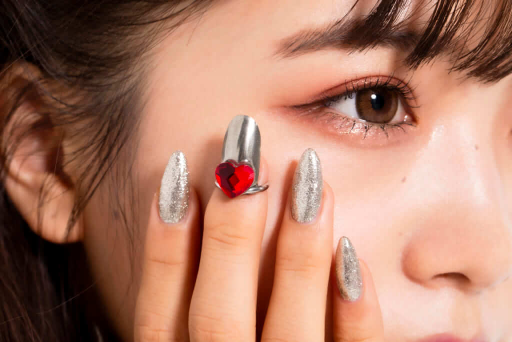 「シルバーのベースに大きめの赤いハートの組み合わせに。カジュアルな服装にもガーリー な服装にも似合うと思います!」