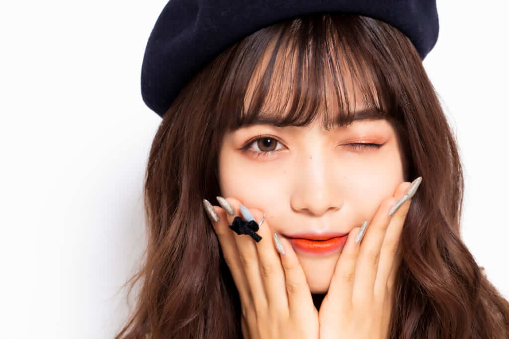 かぶるだけでおしゃれな印象になるベレー帽は今期もマストハブ! そこにベロア素材のBI Gリボンがついたネイルリングを組み合わせれば、アクセづかいで差がつくコーデに♡