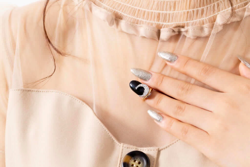 「三日月のデザインで、シンプル&大人っぽくしました。キラキラしているのでエレガント な雰囲気になります♡」