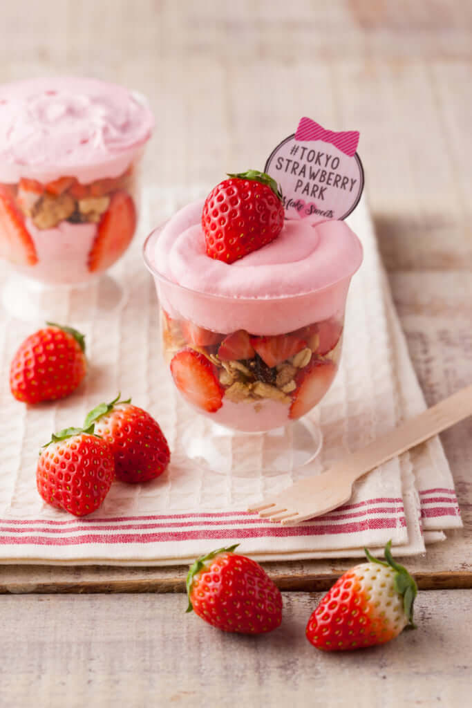 「東京ストロベリーパーク」の「めっちゃいちごパフェ」は、ヨーグルトもいちご!生クリームもいちご!なオリジナルパフェ。ジューシーないちごがカップにゴロゴロ詰まった様子がたまらない…! その名のとおり“めっちゃいちご”な気分になれますね♪