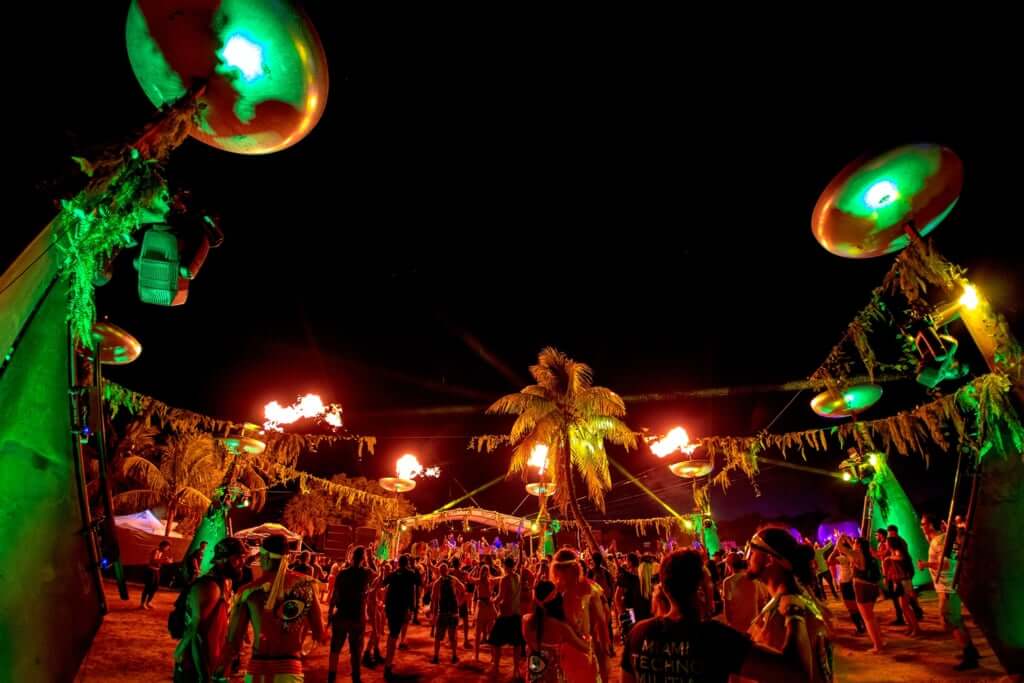 芝生や砂浜にステージやチルアウトスペースが配置され、海風を感じながら心地よく過ごせる魅力的な世界♡ 昼と夜でまったく違う表情を見せ、昼間は心地よく、夜は妖艶に音楽を盛り上げる最高のロケーションです。