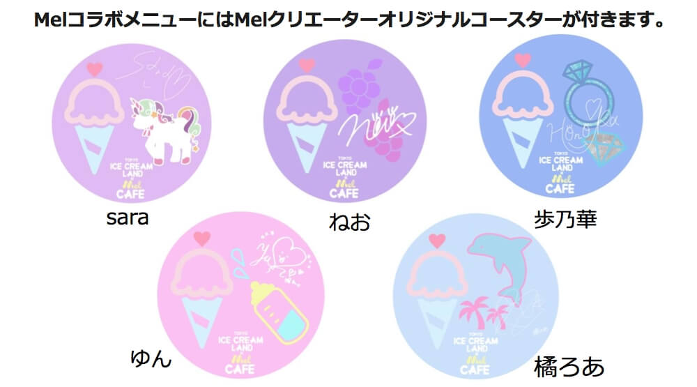 これらのコラボメニューを注文するとMelクリエイターオリジナルコースターがもらえます♡