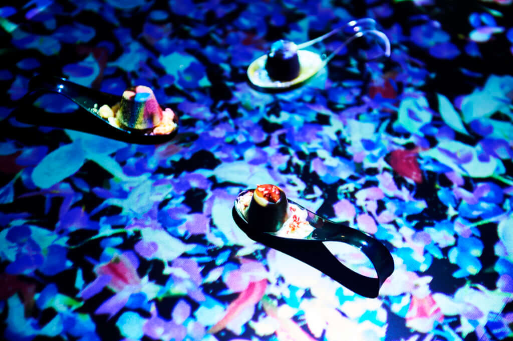 そしてここからがお楽しみ! 特別メニューのピノがサーブされると「チームラボ」によるデジタルコンテンツがスタート。