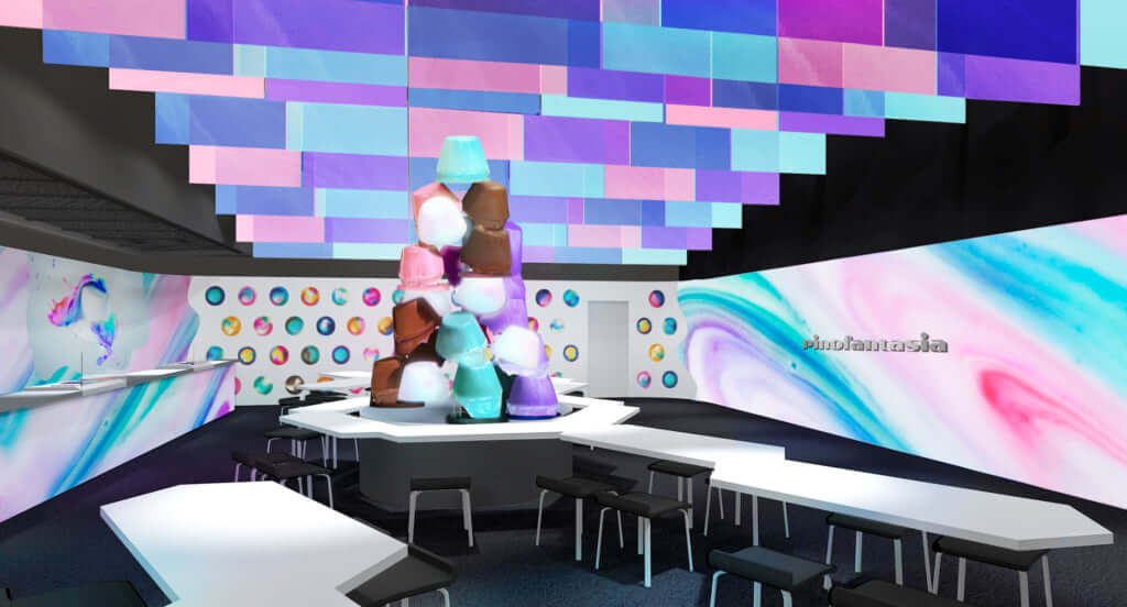 「pinofantasia」は、“ピノでアートを楽しむ”がコンセプトの五感で楽しめる体験型イベント。フォトジェニックなオリジナルのピノがつくれたり、ピノの特別メニューを幻想的な映像と一緒に味わえます♪