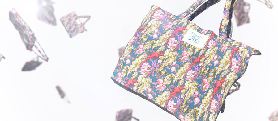 お買い上げの商品は花柄プリントがかわいいオリジナルのエコバッグに入れてもらえます。