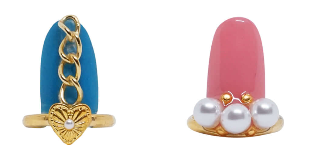 「STAMPNAIL RING」のデザインおよび製作は全て一流のネイリストが行っていて、キュートなデザインからクールなデザインまで全29種。デザイン意匠登録済、実用新案登録済の完全オリジナルネイルアクセサリーです♪