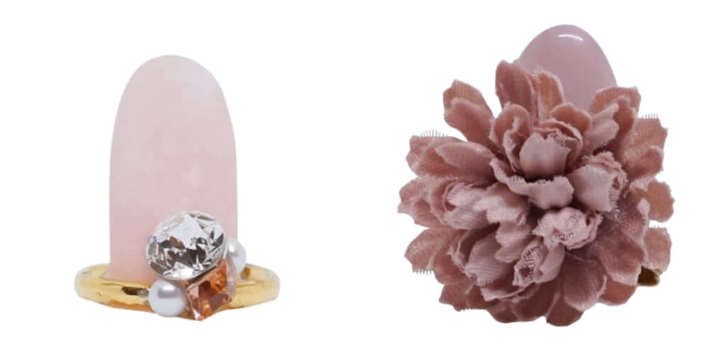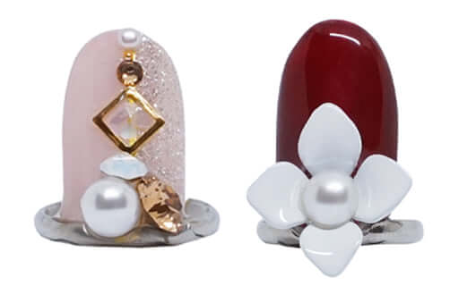 くすみピンクをベースに、お目立ちパール&濃ピンクのビジューをオン。