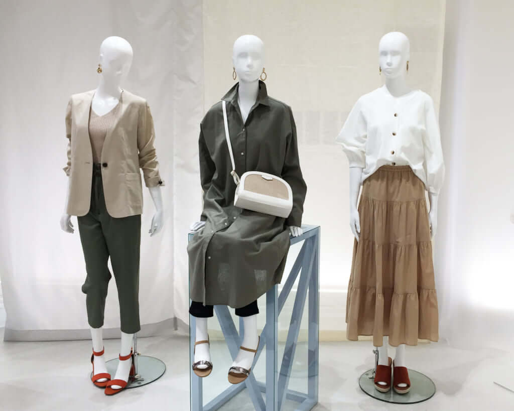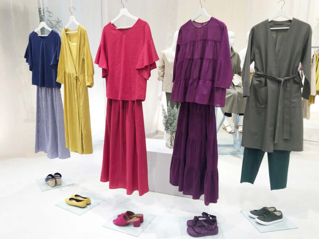 2018年春夏でもキートレンドだった「ナチュラル」がさらに進化して登場。リネンやコットンの風合いを前面に押し出すのではなく、天然の肌触りは残しつつも合繊の機能を兼ね備え、お手入れしやすい素材に。オレンジ・ベージュ・カーキなどアースカラーも注目です。
