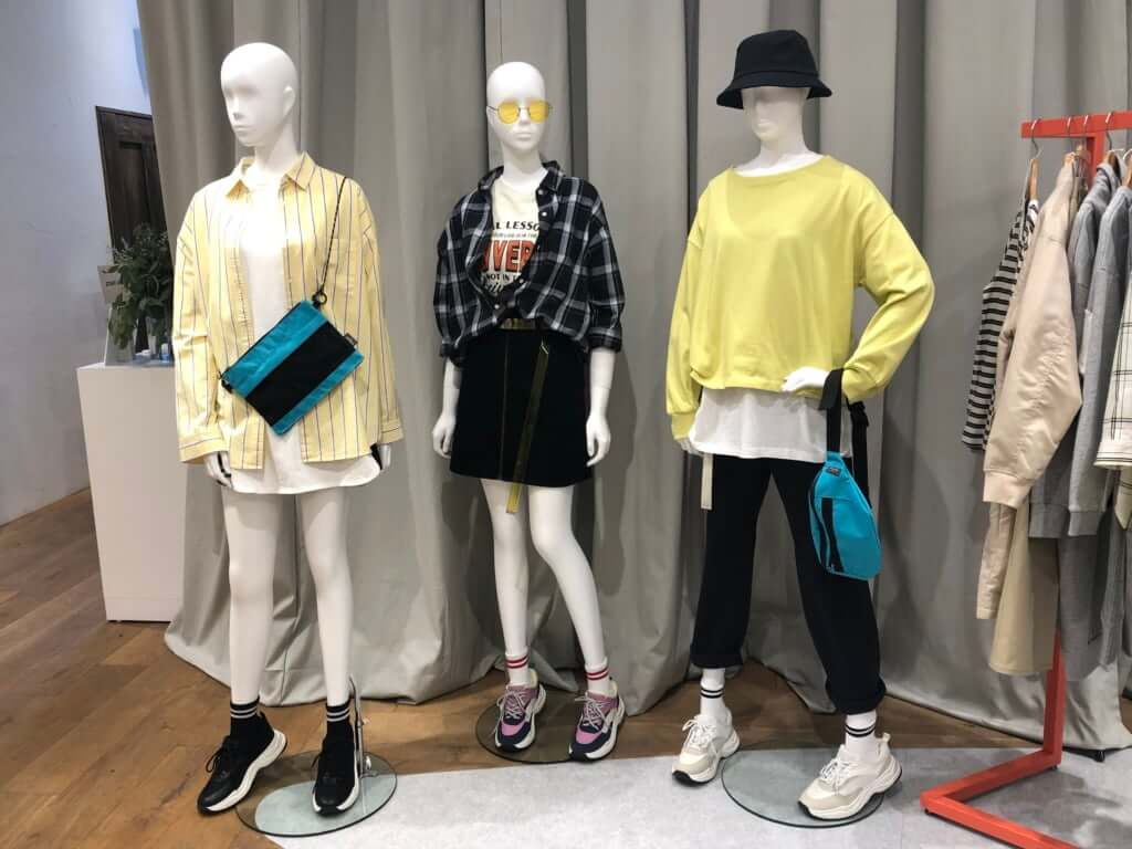 こちらは12月から順次発売される、デニムとストリートスタイルをミックスさせたコレクション。春先取りのイエローカラーを差し色に、オーバーサイズのストリートコーデを提案。