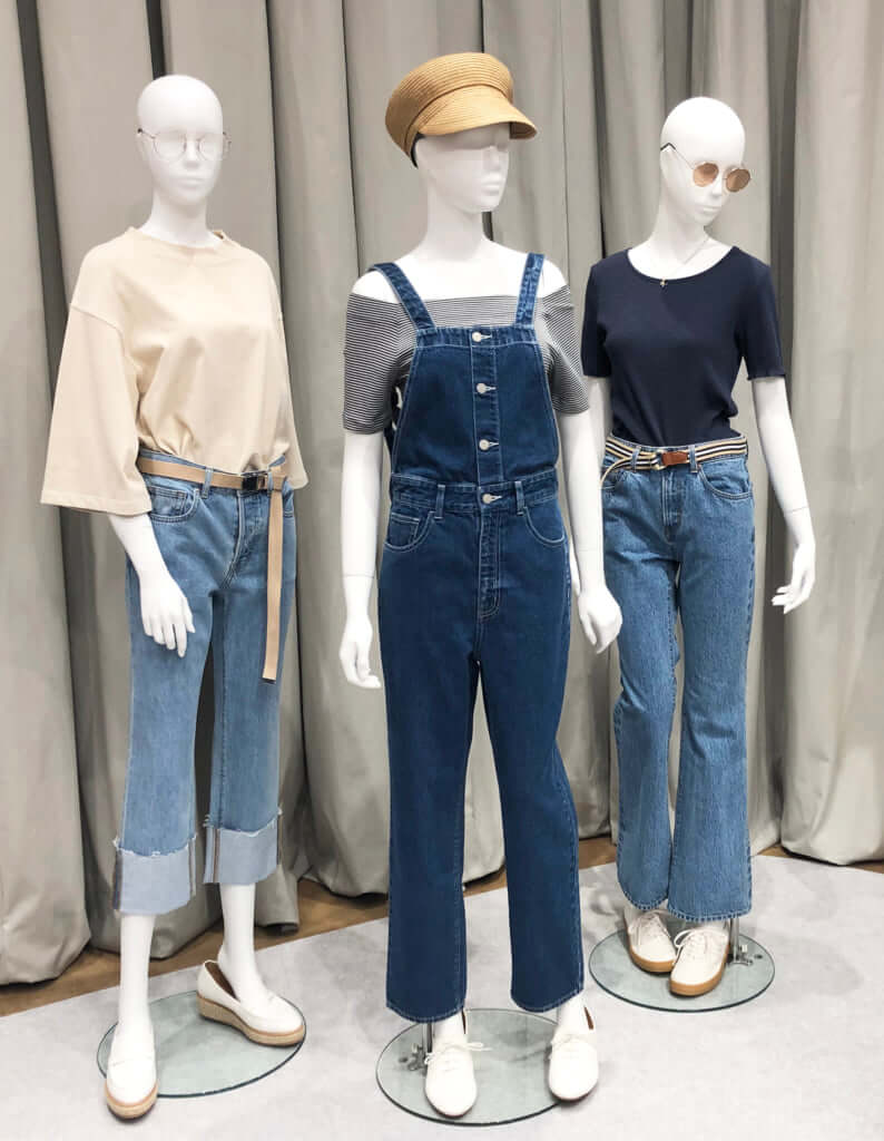 新作デニムはシルエットが特徴的なフレアジーンズや、テーパードアンクルジーンズなど。テーパードアンクルジーンズは足首見せで美脚効果もあり、穿くだけで今っぽいスタイルになれるので1本もっていると色んなコーデが楽しめそう♪