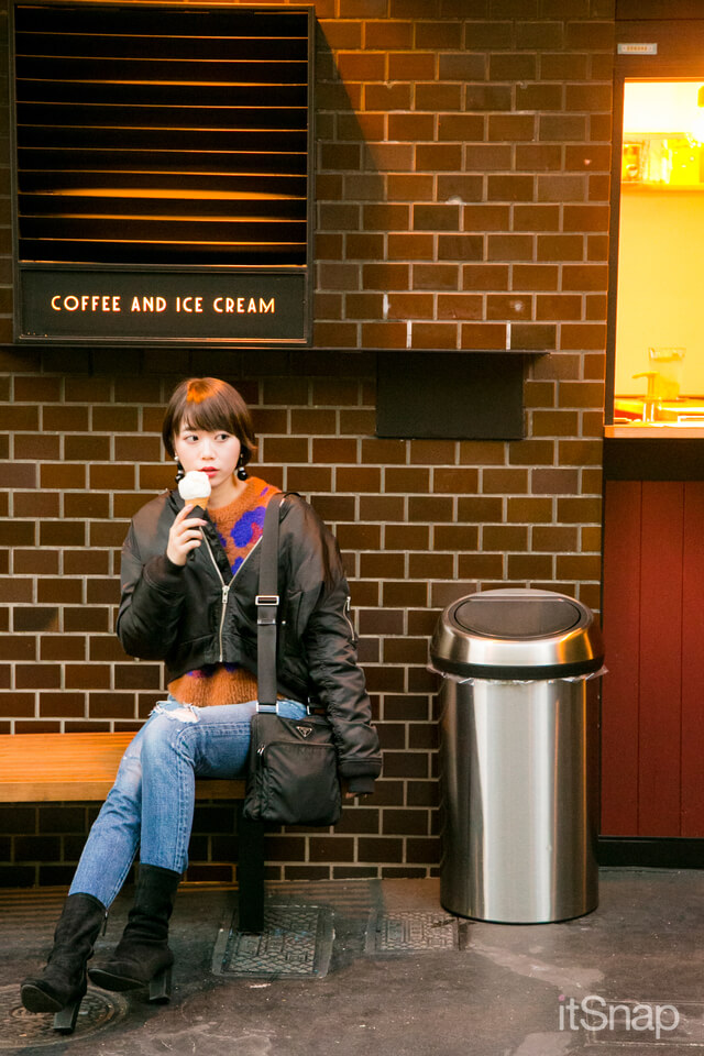 ミニマルなデザインのMA-1を、ニットとジーンズでシンプルに着こなした定番スタイル。ベーシックなコーデですが、インパクトのある柄がかわいいニットを取り入れたことで、遊び心のある着こなしで新鮮な印象に仕上げているのがお見事です♡ バッグやブーツも黒で統一して、大人モードな雰囲気に♪