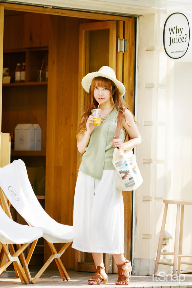 白のロンスカ、麦わらハット…とさわやかなコーデも、