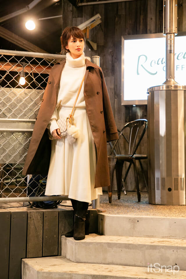 2位 タートルが優しい印象に! ホワイト×カーキのツートンコーデ
