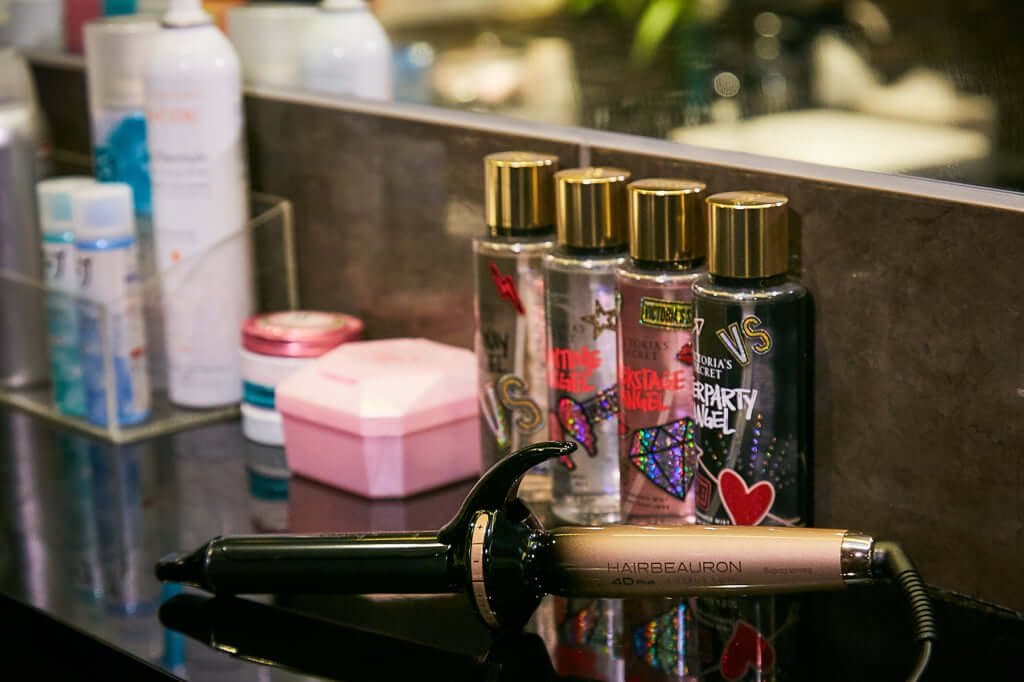 他にも、化粧室には豊富なアメニティが揃っているので、お手洗いついでにメイク直しやおめかしができるのが嬉しいポイント♪ ヘアスタイリング剤にヘアコロン、制汗スプレーやボディクリームまで、置かれている物はすべて使い放題なんです! さらには、「ヘアビューロン 4D Plus」も新しく設置され、最新のヘアスタイリングツールのうるツヤ効果も試せちゃいますよ♡