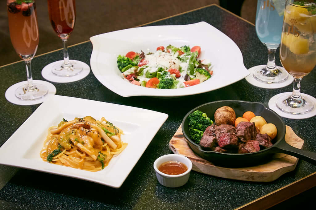女性は40種類のフードや200種類以上のドリンクも、もちろん全部無料! シェフが手作りするフードは定期的にメニューが入れ替えになるので、何度来ても楽しめます♪ ウニを使ったパスタにステーキと高級感溢れるメニューも豊富で大満足できます☆