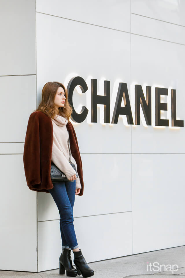 SLYのフェイクファーコートは、ノーカラーでスタイリッシュに着こなせるのが嬉しいポイント! 高見えするH&Mのニットと合わせれば、そんなに着込んでいるように見えないのにあったか♡ 上半身とのバランスを取るため、下半身はスキニーデニム×ヒールのショートブーツでスッキリ見せつつスタイルアップも狙って☆