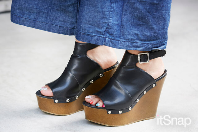 厚底のウエッジソールがさらに美脚度を高めてくれます。