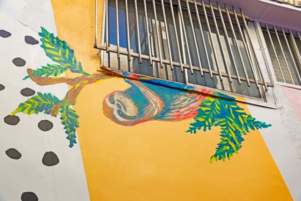 主に伊倉真理恵さんが得意とするのはアニマルの壁画ですが、AKICHI(アキチ)には写真に写っているようなナマケモノのアートの他に、フラミンゴや猿など、かわいいアートがたくさん!