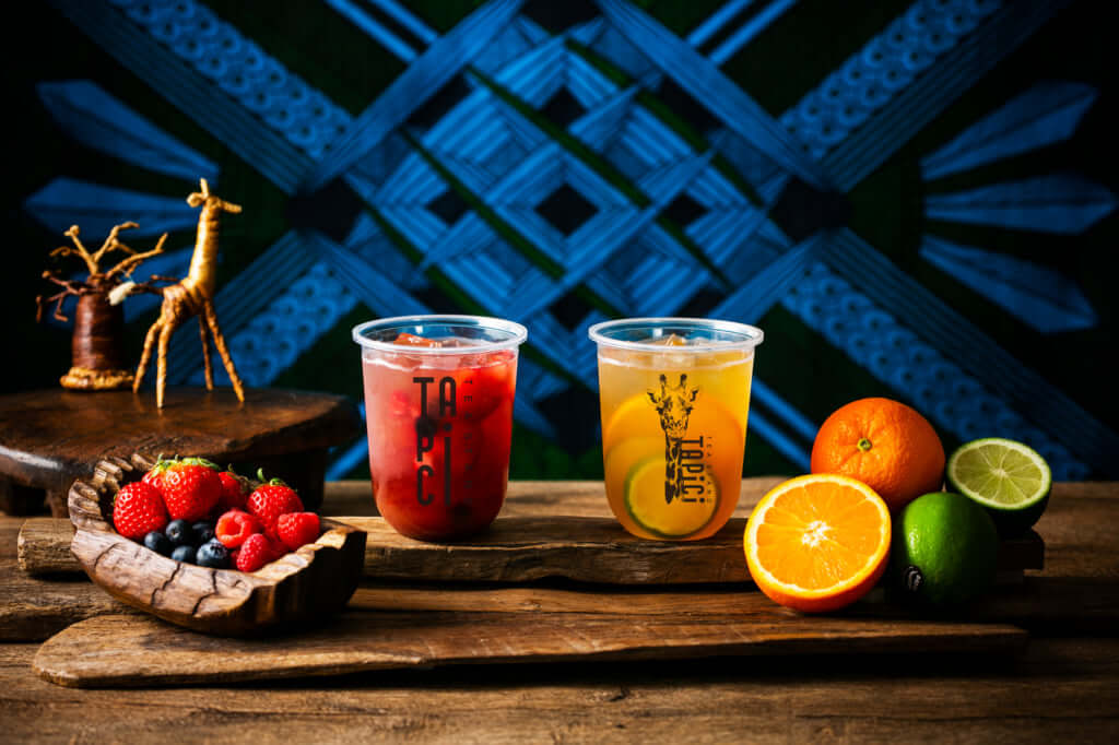 写真左が「ジャスミンティー×トリプルベリー 」、右が「凍頂烏龍茶×オレンジ&ライム」で、どちらもフルーツがたっぷりと入った夏だけの爽やかな味わいです♪