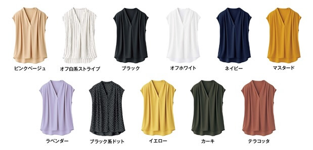 「タックデザインスキッパーブラウス」S〜LL 990円(税別) 、3L〜5L 1,490円(税別)