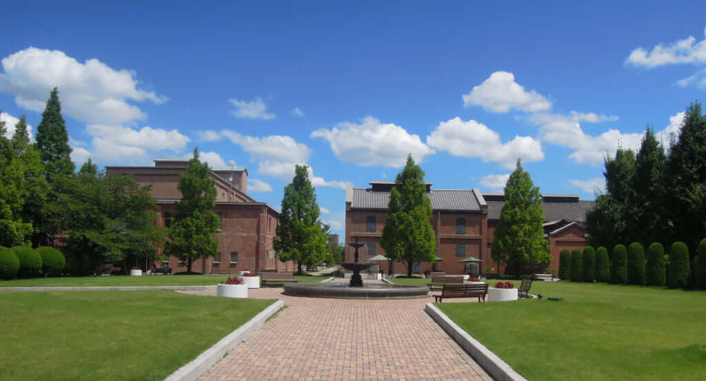 明治時代に建てられた赤レンガ棟と歴史を感じさせる煙突モニュメントは、ノスタルジックな雰囲気を楽しめます。