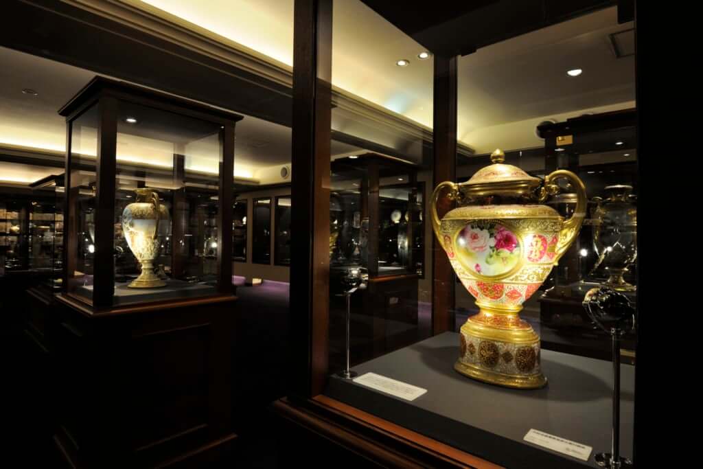 併設のミュージアムには、豪華な「オールドノリタケ」や明治・大正時代に描かれた「画帖(デザイン画)」をはじめ、歴代のディナー皿を展示。また、クラフトセンターでは陶磁器の製造工場となっているため、熟練の技を間近で見学することができます。