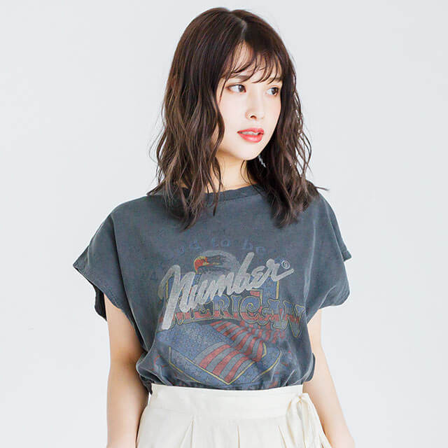 ピグメント加工がヴィンテージ感を漂わせるトップス。ちょっぴりロックなプリントが気取らない大人コーデにハマります♪ デニムを合わせてカジュアルな着こなしも、フェミニンスタイルの外しにしても◎。